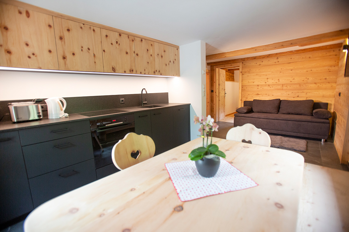 Unsere neu umgebaute Wohnung ist 51m² groß und bietet Platz für 5 Personen. Zu dem gibt es eine voll ausgestattete Wohnküche (Elektroherd, Backrohr, Spülmaschine, Kaffeemaschine, Wasserkocher, Mikrowelle, Kühlschrank), SAT-TV, kostenloses W-LAN, ein Doppel- und Einzelzimmer, Couch mit Schlafmöglichkeit, Fußbodenheizung, Dusche, Badewanne, WC, Waschmaschine und Trockner. Im Außenbereich hab en Sie Sitzmöglichkeiten, die Sonne zu genießen. Ebenso haben Sie einen Parkplatz. Wir bitte höflichst darum, dass in der Wohnung nicht geraucht wird.